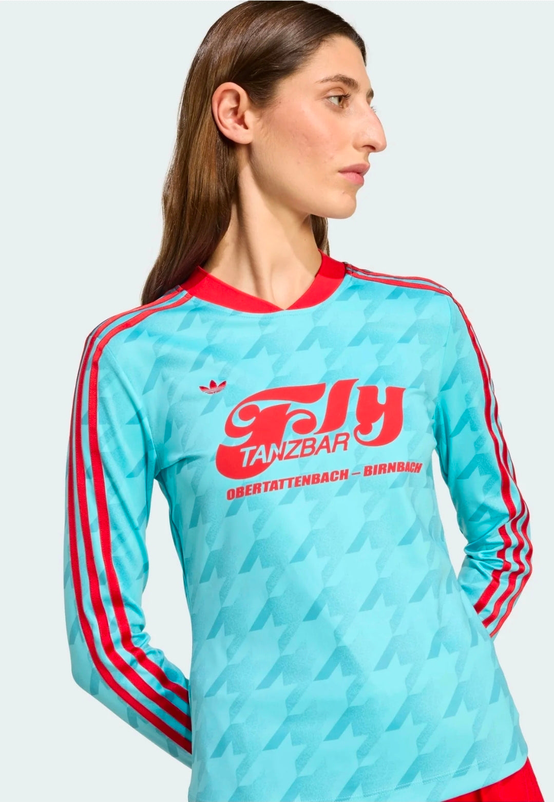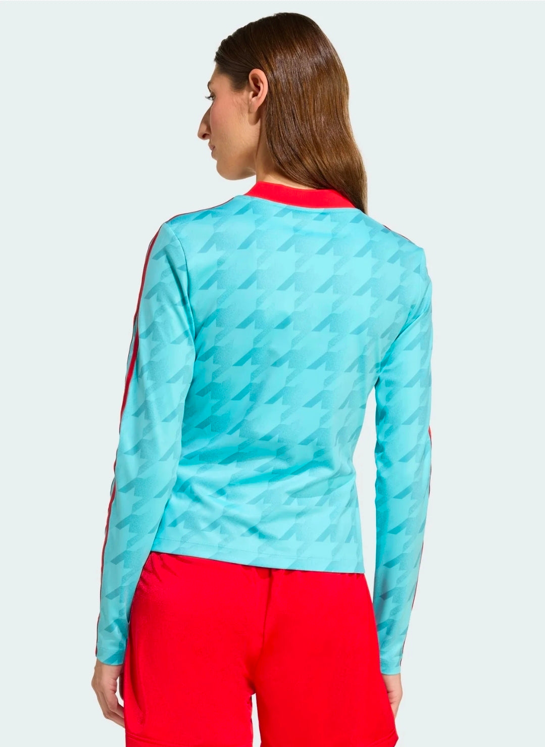 Questa maalia a maniche lunahe adidas è all'inseana dello stile. La vestibilità aderente avvolge il corpo e il tessuto elasticizzato segue tuoi movimenti. La grafica allover richiama il campc da calcio.